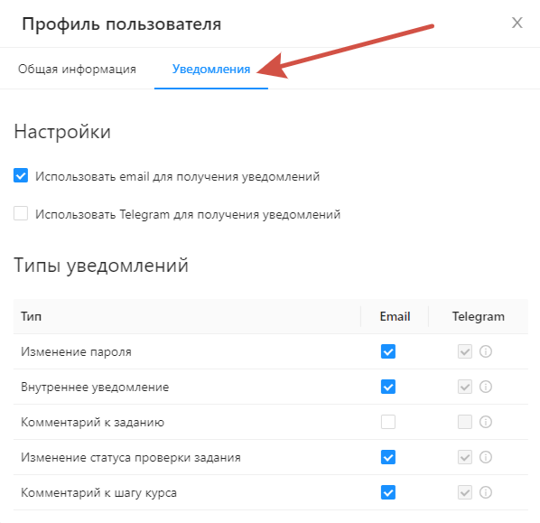 Во вкладке Уведомления настройте оповещения так, как Вам удобно.